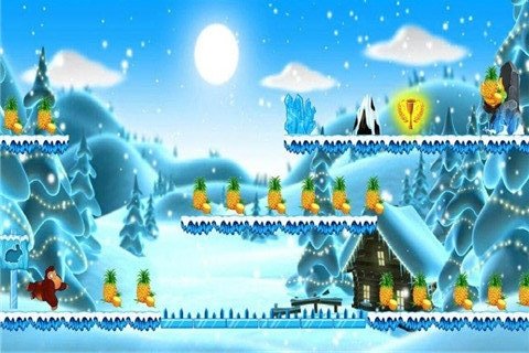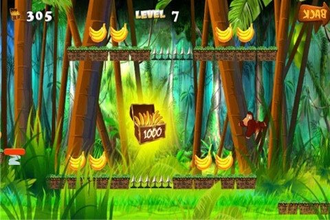 4)收集香蕉:玩家需要收集散落在关卡中的香蕉,每收集一根香蕉都能增加一定的分数,增添游戏的挑战与乐趣。