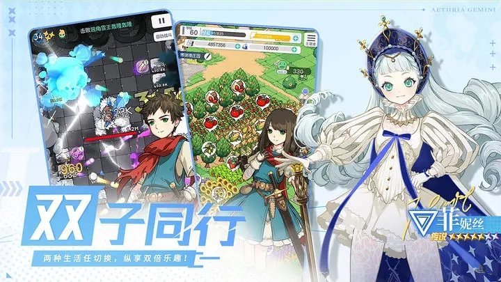 《晴空双子》是一款双子冒险RPG弹射手游。一封青梅竹马的大小姐寄出的邀请信,改变了双子主人公们的生活:其一攀巨藤而上,偶遇奇妙伙伴们,通过弹射战斗,展开奇妙的冒险之旅,其二脚踏实地,壮大博瑞德庄园,收获丰盛资源,为冒险者们打造共同的家园。