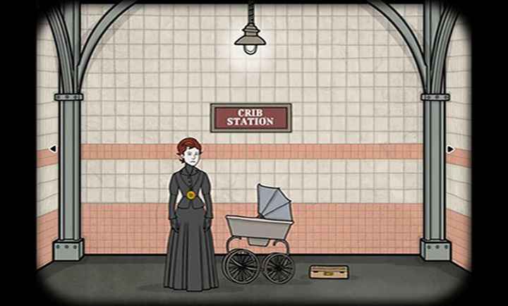 开始游戏,选择第一章,婴儿床站,一开始我们需要点击婴儿车,然后就能打开车门下车了。