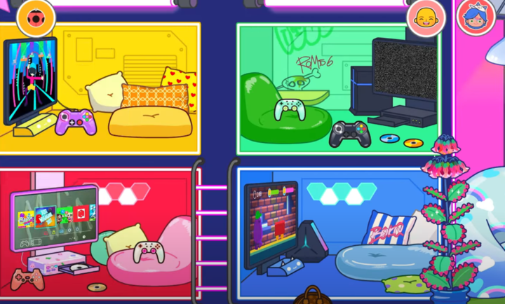 电竞馆位于游乐场的左边,电竞场馆中有观赛区以及4个同主题的电竞房,玩家可以邀请自己的朋友加入场景中进行玩耍,米加小镇电竞室游戏除了电竞房还有专属的休息区还有小吧台,游戏打类了还可以去吧台吃到各种零食