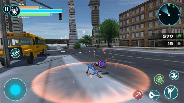 左侧移动、加速,右侧绳索,攻击(跳跃),跳跃,右上侧的武器更换以及血量、经验的显示都实时更新,一览无遗,凭借着大家自由的玩法,与其他帮派的人物进行交火,期间杀人能够获得经验,杀多了会产生星级,警察和其他附近角色会特殊照顾你对你展开火热的进攻,而如何存活,如何将其他人物击杀则是你所需要完成的任务。