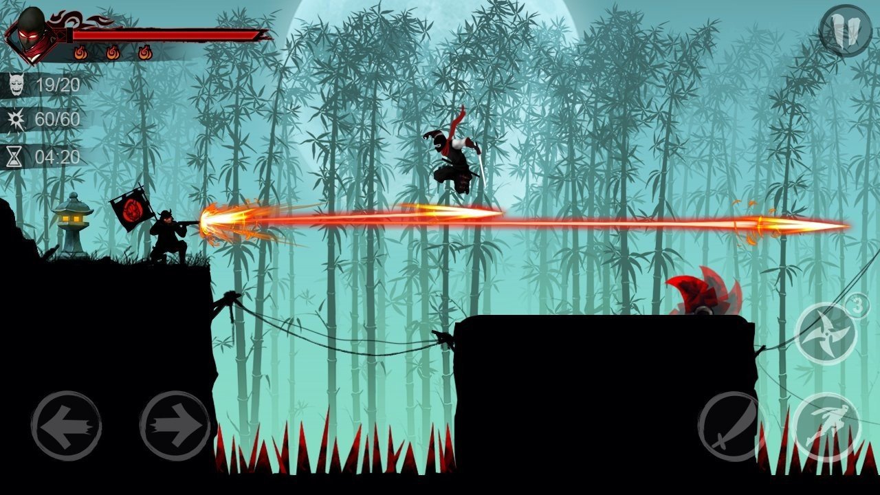 忍者雷的复仇之路是注定艰苦的,玩家也要通过关卡的历练提升操作,从而获得最终胜利。