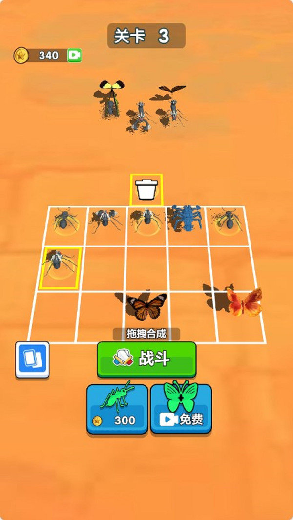 昆虫进化之王是一款引人入胜的合成游戏。在这个游戏中,你将扮演昆虫进化的创造者。通过组合不同类型的昆虫,整合它们的特性和能力,逐渐培育出更强大、更独特的昆虫新品种。利用进化过程中获得的资源和技能解锁新物种,扩大昆虫家族的领地。游戏拥有简单易懂的操作和精致的图形特效,让你沉浸在昆虫世界的奇妙之中。发挥你的想象力和创造力,成为昆虫进化的掌舵者,统治昆虫王国!