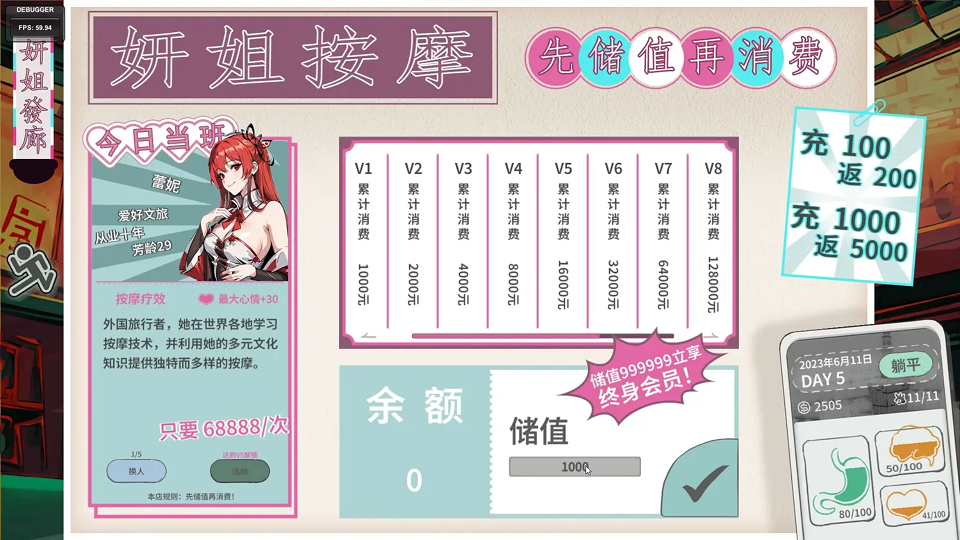 游戏中有多种不同的活动可供选择,例如兼职工作、投资、商店交易、赌博等;