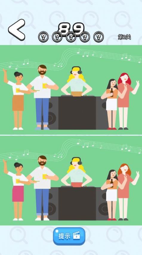 在限定时间内找出指定数量的不同之处,超出时间限制则游戏结算失败。