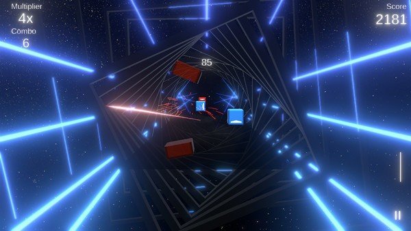 〇纯发泄的游戏,跟随音乐的节奏切割立方体,挑战玩家手速;