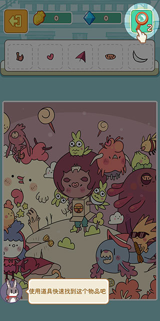 3、如果寻物难度较高,可以点击右上角的放大镜道具来快速定位物品。