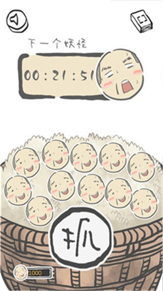 2、带回了倒计时UI.购买任意田螺后,回到大叔丸子页面点击田螺,会出现展示5秒的对话框,框内有距离下一只妖怪出现时间的倒计时。