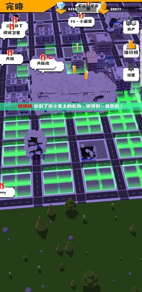 建筑物升级后!地皮价格是以田字格方式扩散的!小车车的礼物一定要点!给金币给钻石!只要手勤快!飞机都能打下来!尽量盖价格高的楼!