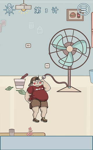 用螺丝刀打开电风扇,让小胖躲进去,最好把盖子罩上。