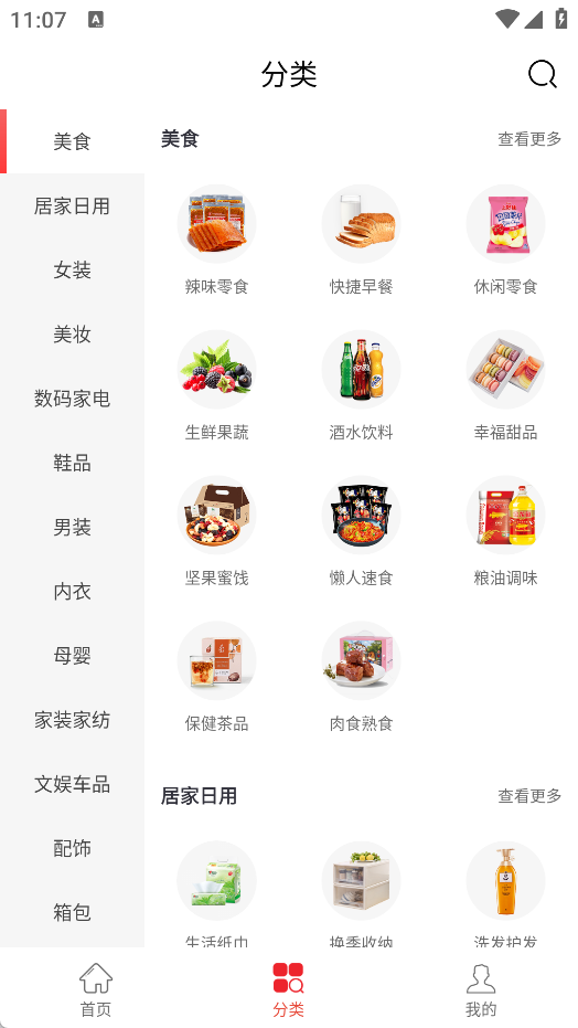2、在分类里面有很多不同的商品分类,可以随时根据不同的分类进行购买。