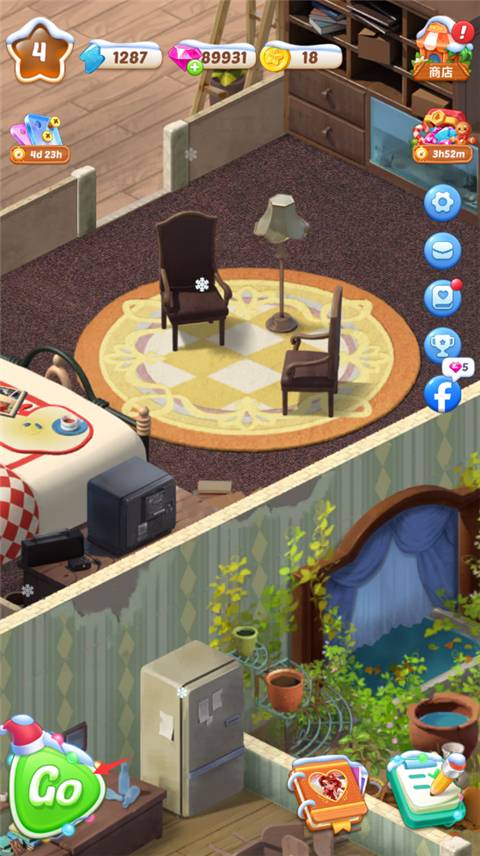 3、每完成一个小任务,修椅子和换地板就能拿金币奖励,做得多赚得多感觉特别上瘾。