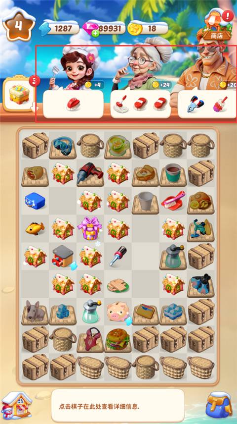 2.在这里可以看见它们需要的物品,当格子中存在着相应的物品后即可获得金币