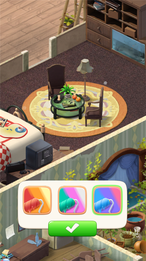 2、房子破破烂烂没关系,你可以亲手修,换家具和刷墙全都自己做主,装修风格玩家说了算。
