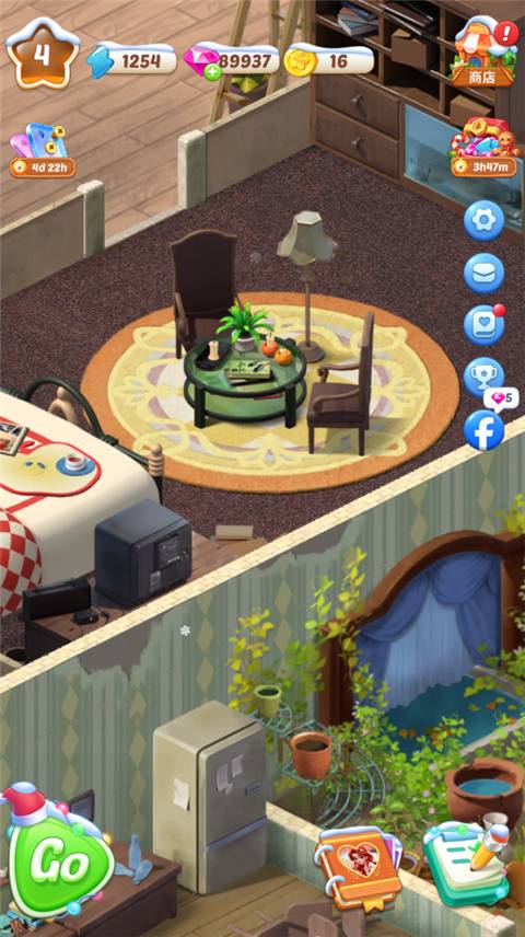 3、金币是升级和装修的重要道具,玩着玩着金币自然积攒多起来用起来感觉特别有价值。
