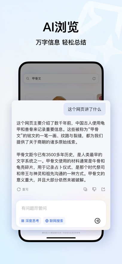 QQ浏览器开启AI新体验!全新上线 QQ浏览器·QBot,直达5大AI新能力,简单用上AI。我们聚焦用户核心需求,优化了【小说】自动翻页功能,提升您的流畅阅读体验使用中遇到任何问题,可通过“QQ浏览器”-“我的”-“设置”-“帮助与反馈”告诉我们哦,以便我们针对性优化。