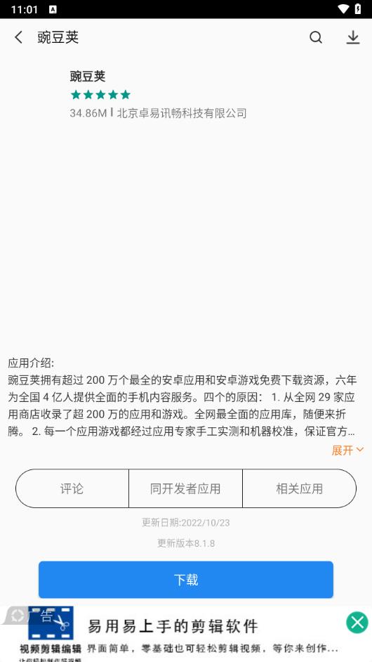 2、点击任意应用可进入详情页面,查看介绍、截图、评分等信息,并一键下载安装至设备;