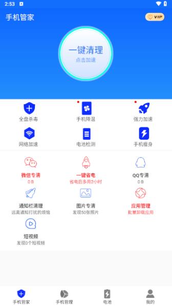 1一键清理,清理手机垃圾,释放存储空间 ,让手机更轻松,拒绝卡慢,从此开启;