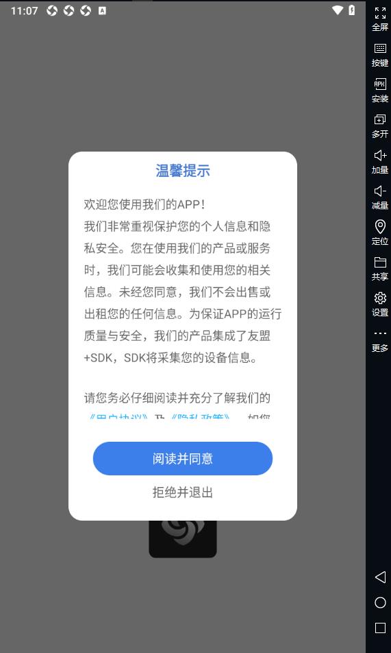 1、下载安装APP后打开软件,提示同意与否,点击同意进入注册界面;