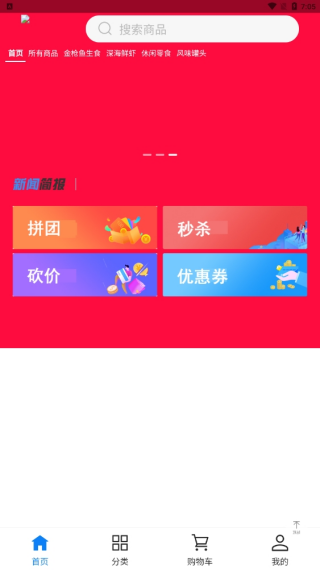 1、丰富的分类商品内容,这里为用户提供深海鲜虾、休闲零食以及风味罐头等分类让你品味;