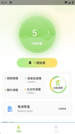 4、【清理加速】一键清理无用垃圾,释放内存更顺畅;