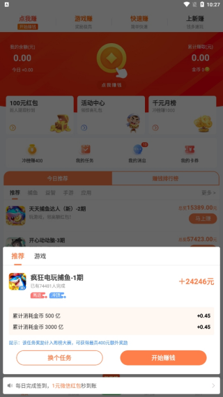 1、每天都能够领取现金奖励,更多任务随时领取和完成;