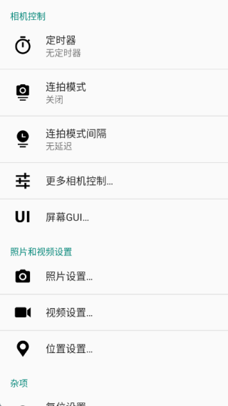 3、点击上方最右边的设置按钮,可以进行相机控制、照片和视频设置,还有各种杂项的设置;