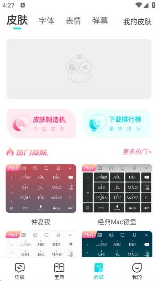 2、进入【主题中心】,挑选你喜爱的炫酷皮肤,点击即可应用,每一次打字都变得独具风格。
