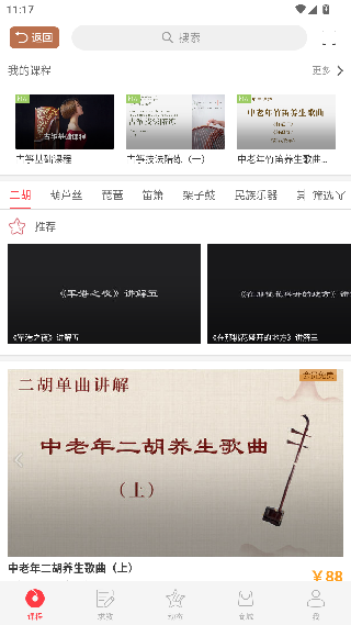 6.APP中有着大量的二胡名师教学小视频可以供你观看学习、揣摩,快速学会拉奏二胡曲;