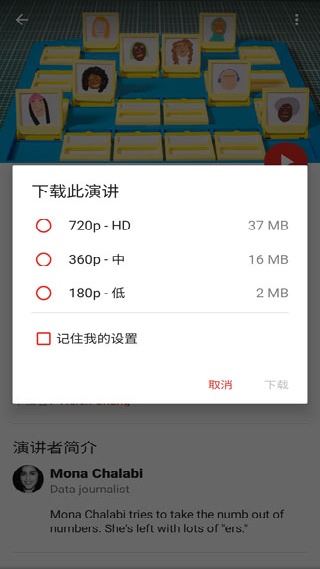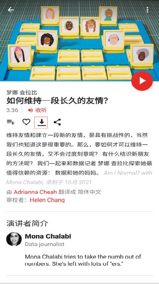 2.打开的软件当中找到自身感兴趣且需要下载的TED演讲内容,随后点击进入相应的详情页面,并点击其中的下载图标;