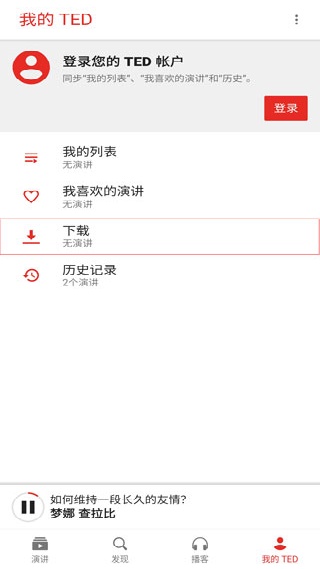 4.在完成下载之后,能够通过点击“我的TED - 下载”这一选项来对已下载的视频进行查看。