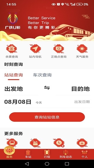 2、首页展示了车次查询服务,直接了解基本操作方式,输入信息就可以;