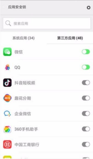 4、如果你手机里的应用程序太多了也不用担心,可以通过搜索方式查询需要上锁的应用;