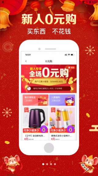 2、【新人福利】新用户下载注册可享受首单0元购物服务;