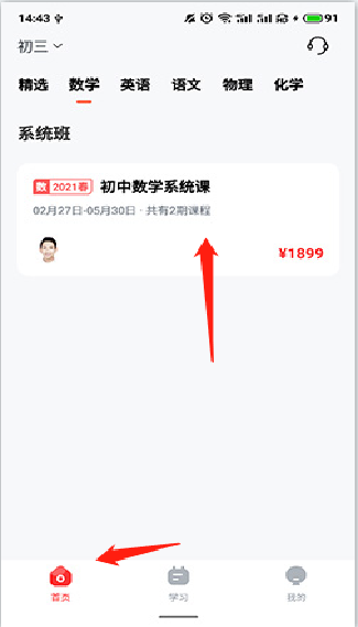 1.先打开软件,接着点击底端的“首页”选项以选取合适课程。