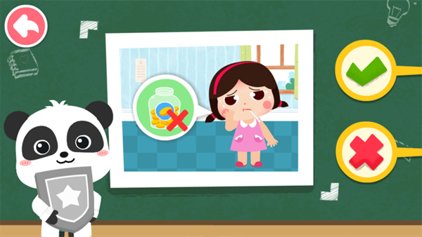 4. 接着,您会通过游戏去体验小朋友碰到危险物品的场景,按照提示选择对错,以此来学习防护知识。