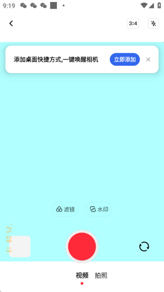 3、在拍照页面中可以进行录制各类视频,同时选择各类滤镜和水印等信息;