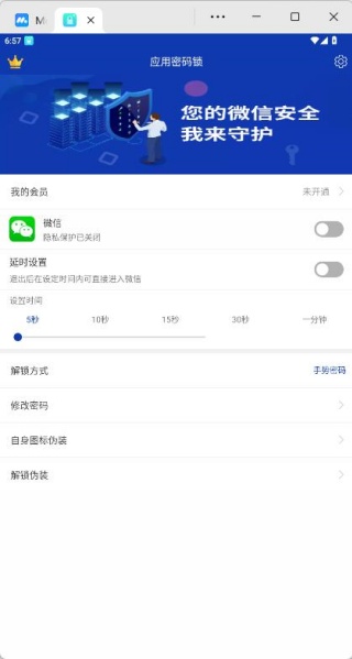 6、解除应用伪装之后可以继续对其进行加密,用户可以自选解锁伪装的方式;