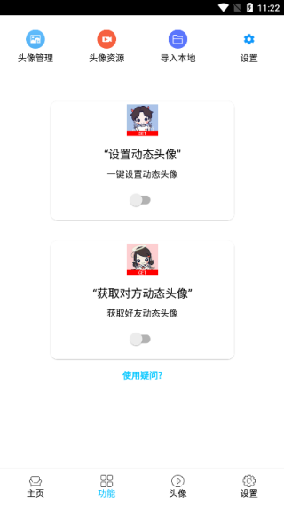 2、在功能中可以进行设置动态头像,同时可以导入本地的头像;