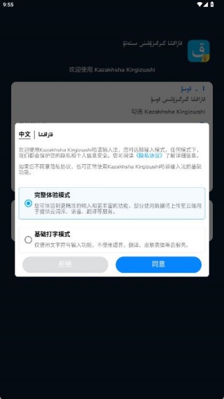 1、打开应用,进入输入界面,选择哈萨克语、中文或英文输入模式。