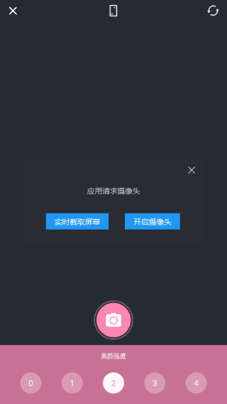 2、拍摄前可以进行调节美颜强度,这里的强度一共为五个度;