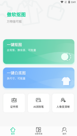 1、在首页中提供了一键抠图、一键白底图、证件照、消除笔、人像变清晰等操作;