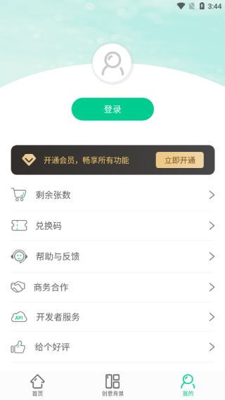4、在我的页面中可以了解剩余张数、兑换码等内容,还可以开通会员,享受所有的功能。