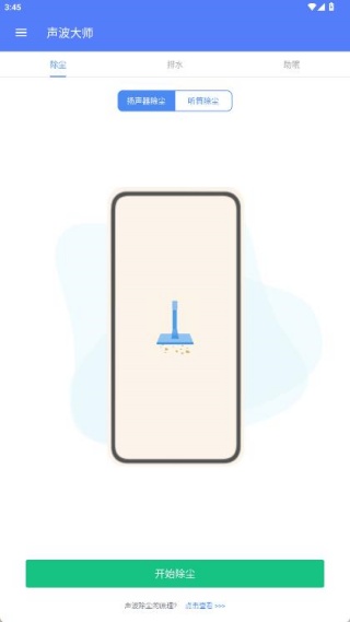 1、下载安装声波大师并打开应用,首页即可看到助眠、除尘清理和手机排水三大功能模块。