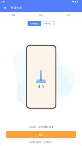3、选择除尘清理根据提示将手机扬声器对准应用界面,启动声波清理,轻松去除灰尘和杂质,恢复音质。