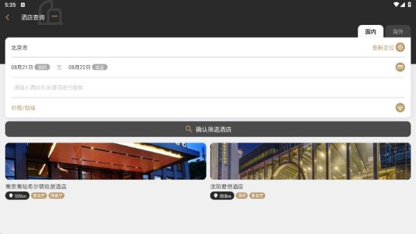 3、结合你的行程和时间安排,快速搜索适合的酒店;