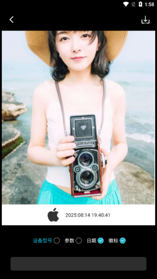 1、水印拍照,用户选择拍摄的功能就可显示出信息;