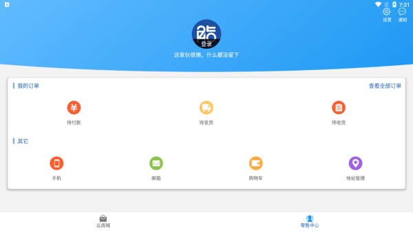 1、云商城功能,可在这里看见多种多样的产品,自由选购;