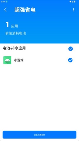2、根据需要选择“一键省电”功能,自动关闭耗电后台程序,延长手机续航时间。