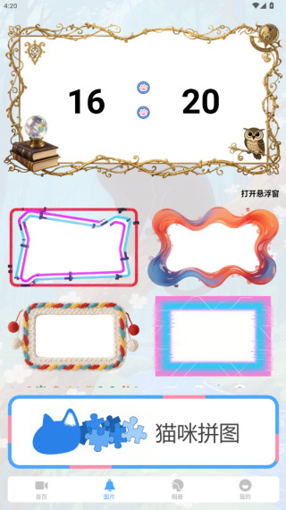1、悬浮时钟支持个性化边框,九宫格拼图可自定义相册,玩法跨界又新颖。